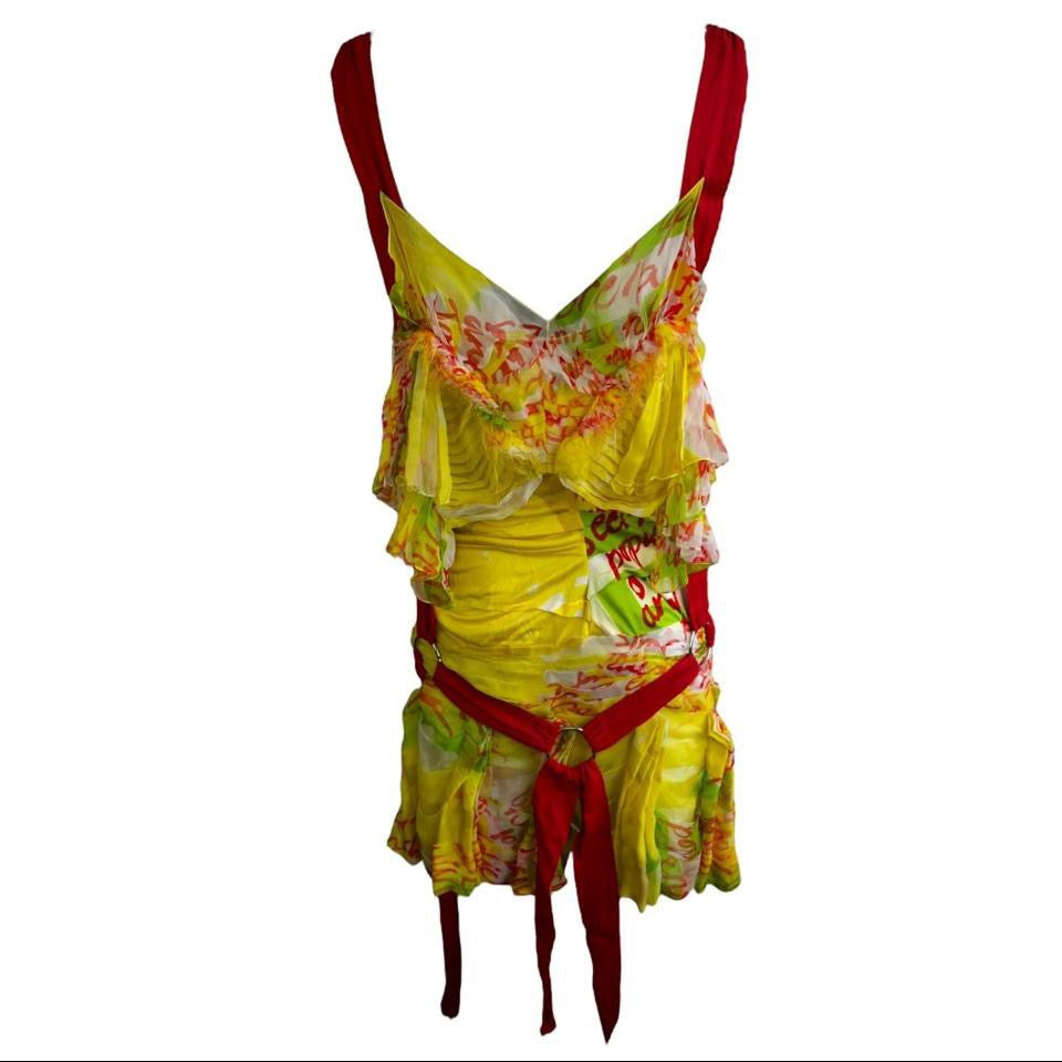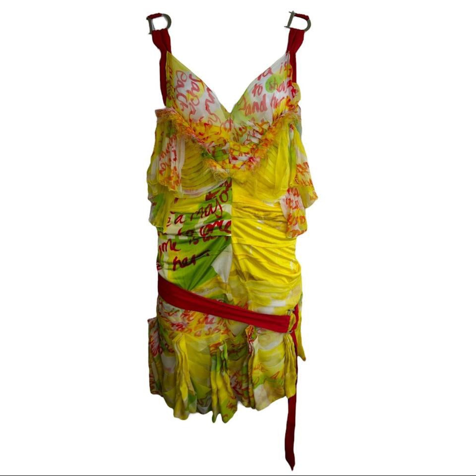 S/S 2003 Christian Dior by John Galliano yellow graffiti-print silk dress.