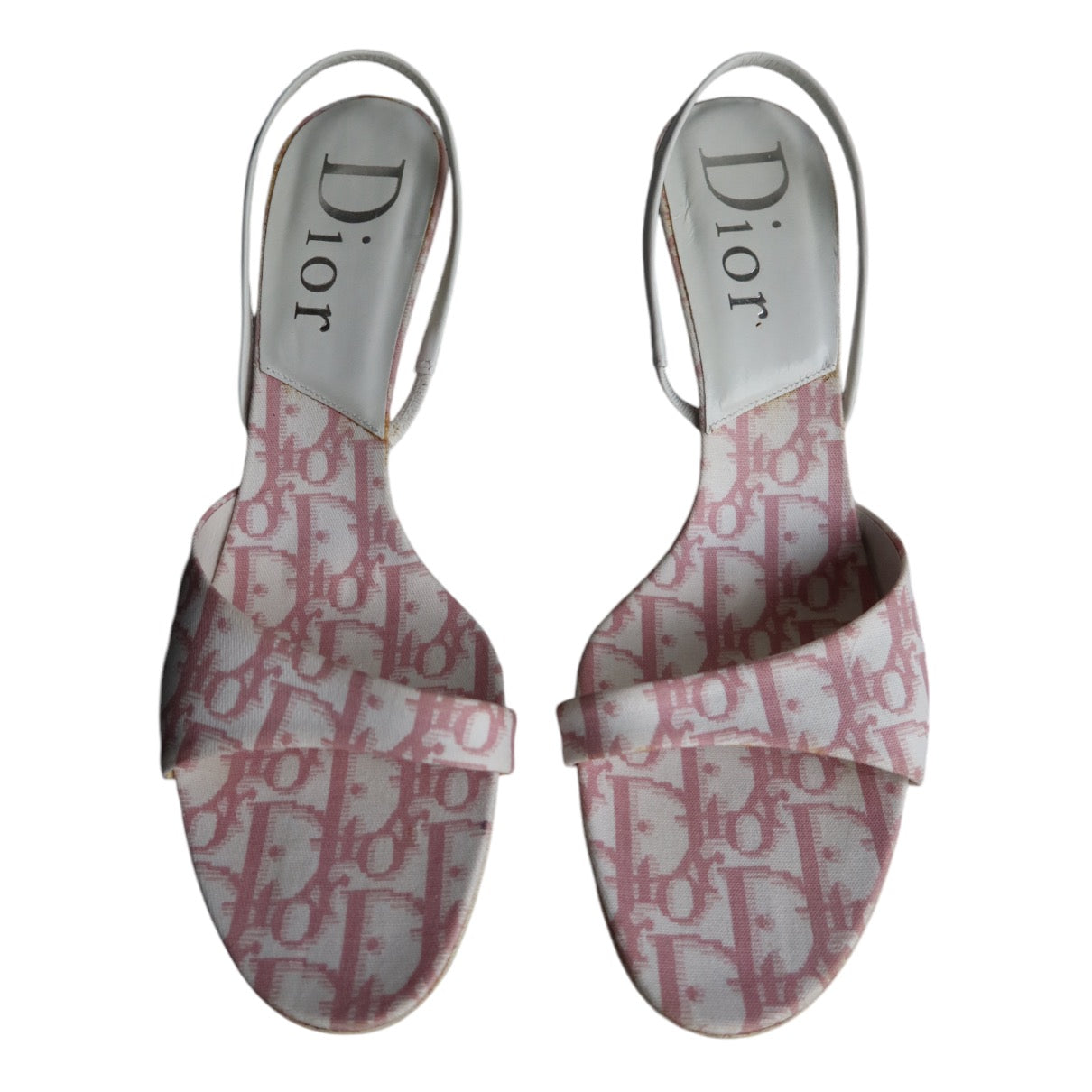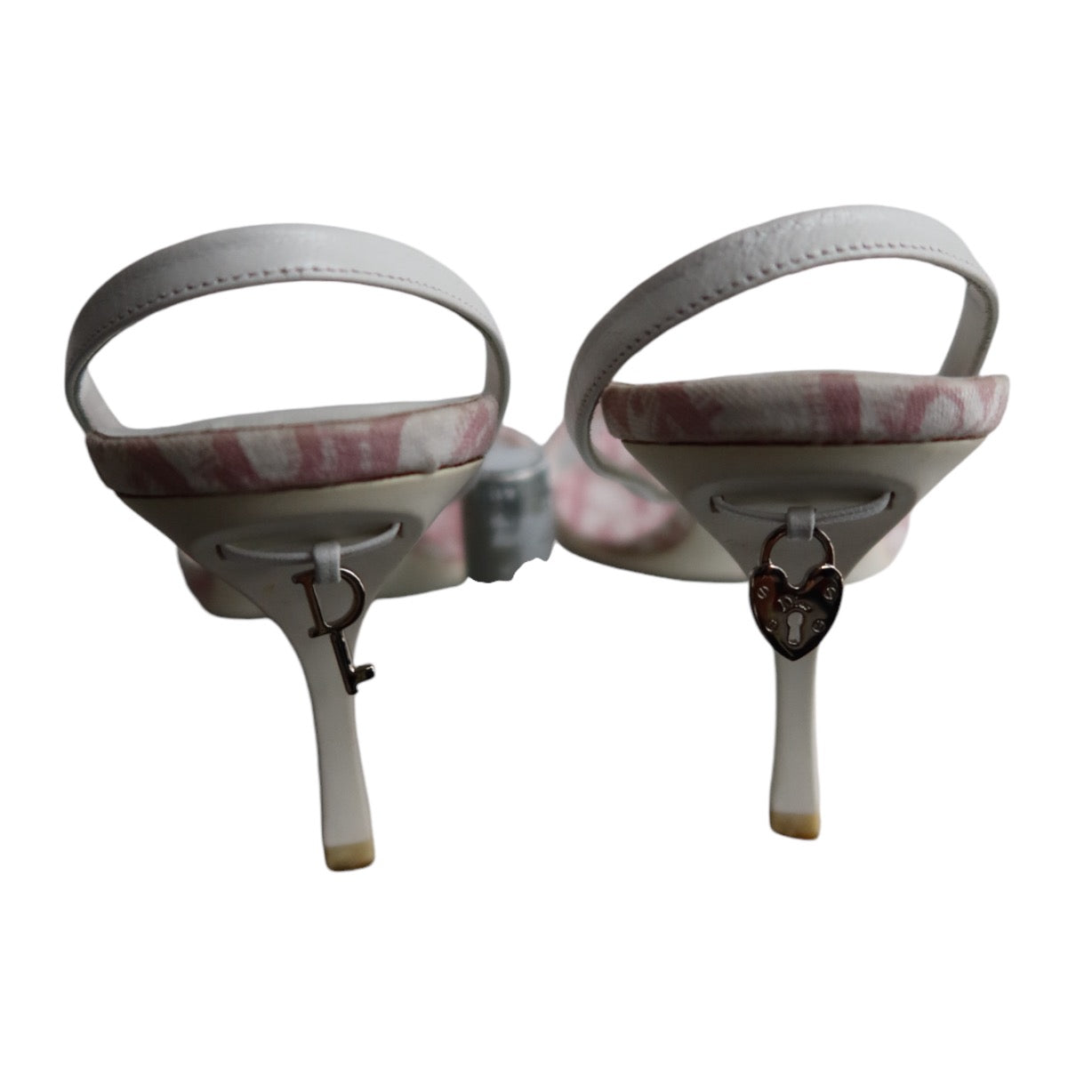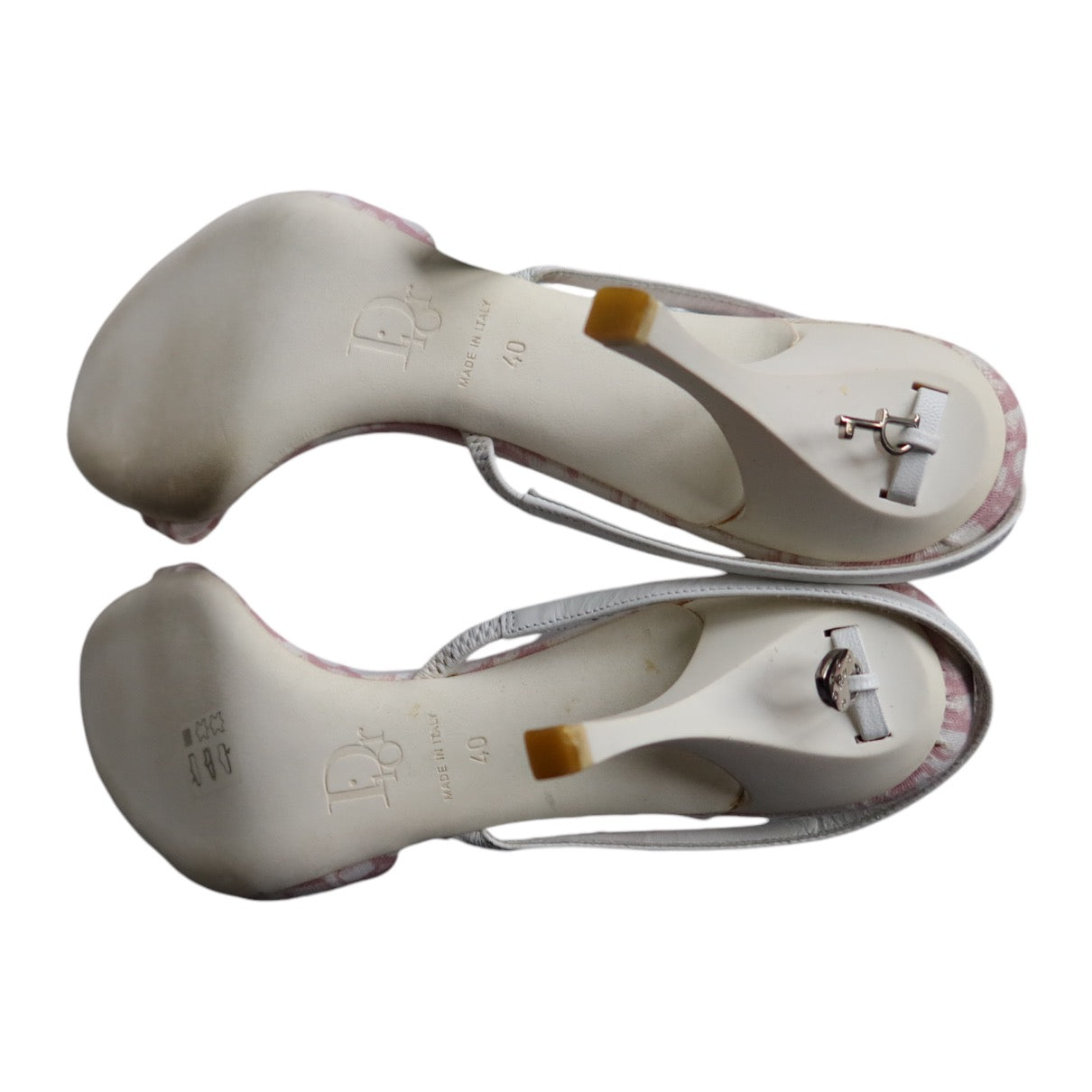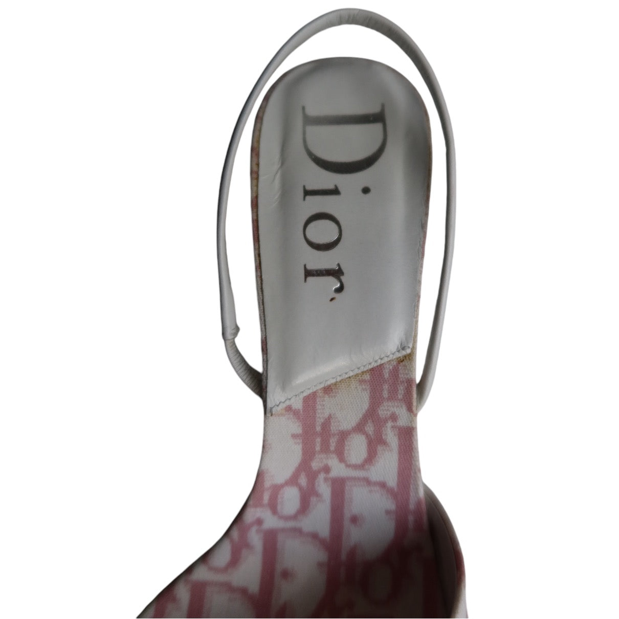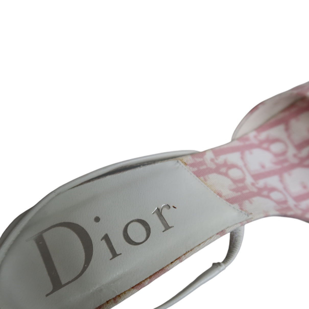 FeaturesPink and white heels adorned with the iconic Diorissimo print from the spring 2004 Girly Collection, a signature design by John Galliano for Christian Dior