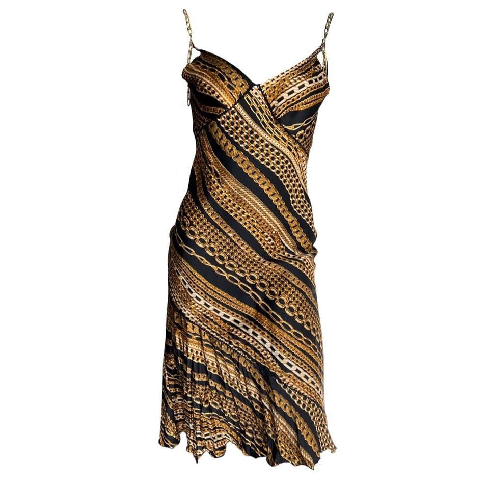 Roberto Cavalli Gold Chain Print Silk Dress